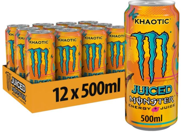Chaos with a Citrus Kick! 💥 This Juiced formula delivers a harmonious collision of bright, refreshing orange and mixed fruit flavours. This 12 x 500ml pack gives you the full Monster energy blend (Taurine, Ginseng, B-Vitamins) for unstoppable drive. Smooth flavour, maximum chaos.