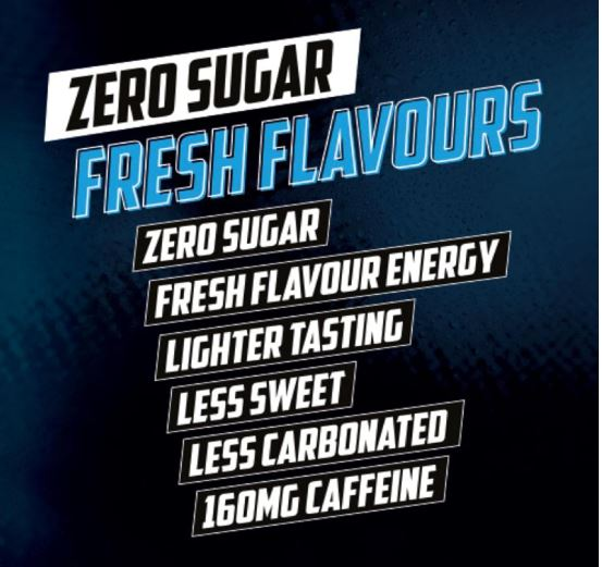 The Formula: Carbonated Water, Acid (Citric Acid), Flavour Enhancer (Erythritol), Taurine (0.4%), Acidity Regulator (Sodium Citrates), Flavourings, Panax Ginseng Root Extract (0.08%), Preservatives (Sorbic Acid, Benzoic Acid), Sweeteners (Sucralose, Acesulfame K), Caffeine (0.03%), Colours (Carotenes, Anthocyanins), L-Carnitine L-Tartrate (0.015%), Vitamins ($\text{B3}, \text{B5}, \text{B6}, \text{B12}$), Inositol.